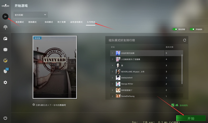 在CSGO中,游戏官方在几年前推出了一款大逃杀类型的模式,并将大逃杀模式取名为头号特训,玩家可以在进入游戏后点击开始游戏,然后点击游戏界面中间的头号特训选项进入该模式,玩家点击该模式界面右下角的开始选项即可开始游玩大逃杀模式。