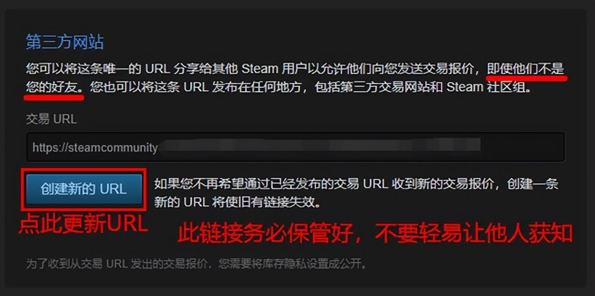有人会问,既然通过API不能主动发起报价,非好友之间也无法直接发起报价,那骗子小号是如何向自己发送报价的呢?这就要提到交易URL了。Steam的机制规定非好友之间无法直接发起报价,但是通过特定的交易URL,他人就可以在尚未添加好友的情况下向你发送报价,API劫持诈骗核心之一