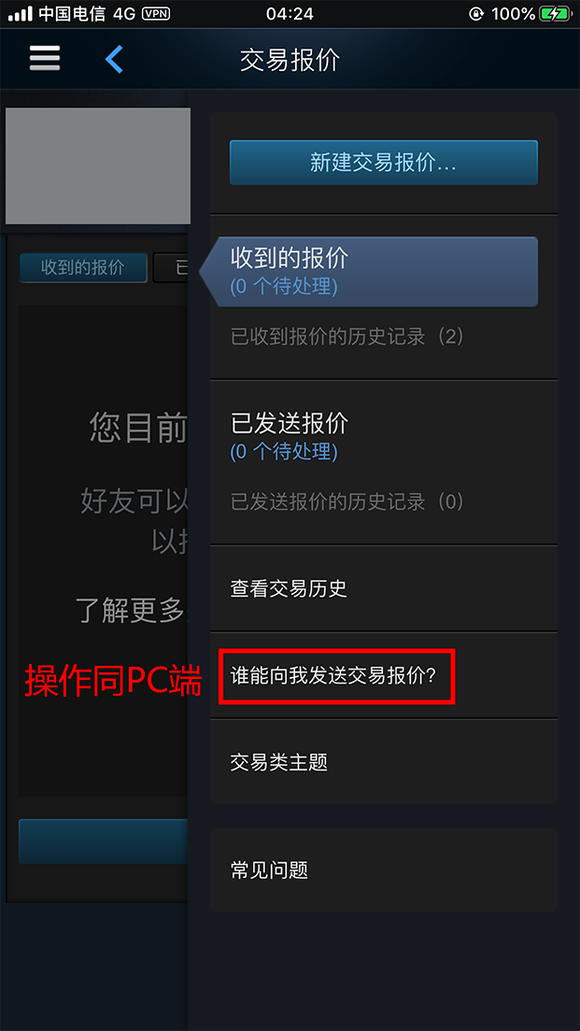2、上面说过,通过API可以拒绝掉真正的交易报价,那么就在交易时查看报价历史里是否有被非本人取消/拒绝掉的报价,若有,那么你的账号就遭到了API劫持。你可以找一位好友试着向你发起报价(发起前请确保好友自己没被API劫持),如果你在报价历史发现了不是被自己拒绝的原报价,那么你已经遭到了API劫持(警告:部分API劫持会忽略掉价值低的报价,可能测试不出来,真正交易时则凶相毕露)