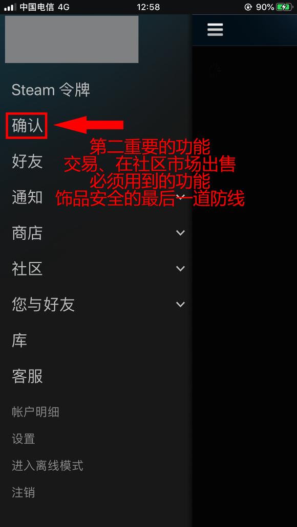 保护库存安全的最终防护手段。你在Steam市场出售、发起己方有物品的交易报价(若己方没有东西不需要确认),都需要在Steam手机应用侧边栏的“确认”一项里进行最终确认,防止库存被恶意盗取。确认功能只能在绑定了令牌的手机上使用,即使骗子盗了你的号,确认仍要号主本人进行,换句话说,自己是否被骗取决于【你自己】