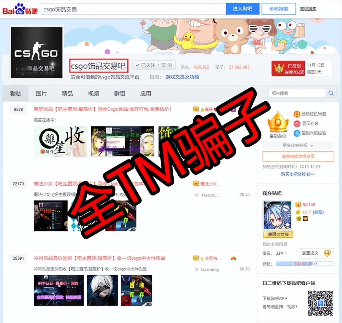 3、不去浏览“csgo饰品交易”等贴吧,那里早已无吧务管理,何来“吧主置顶担保”?