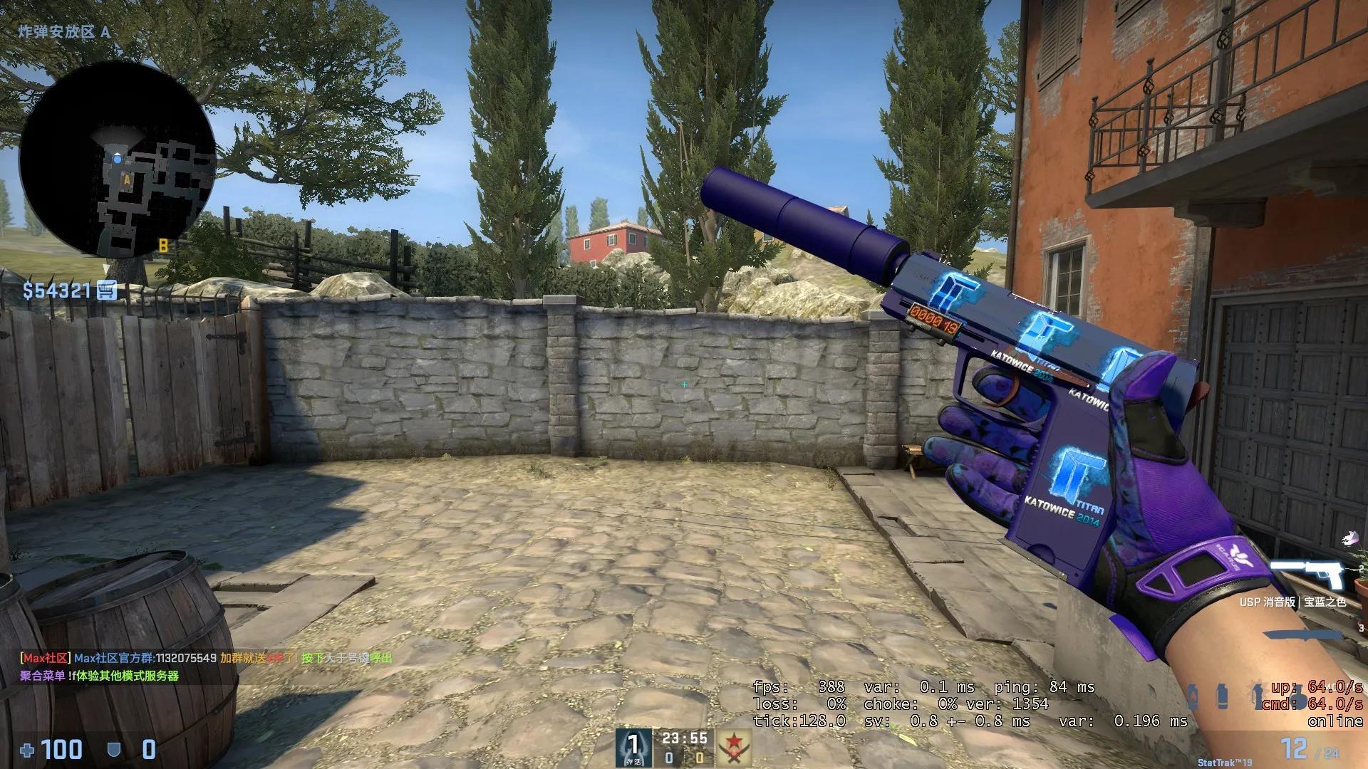 USP我选择了古堡激战收藏品的宝蓝之色搭配四张14全息Titan(强调:地图收藏品是不带计数器的,我这上面带计数器仅仅是因为我自己使用的枪皮就是带计数器的,社区服无法去掉,我也懒得换原皮,解释一下不要让大家产生误解)