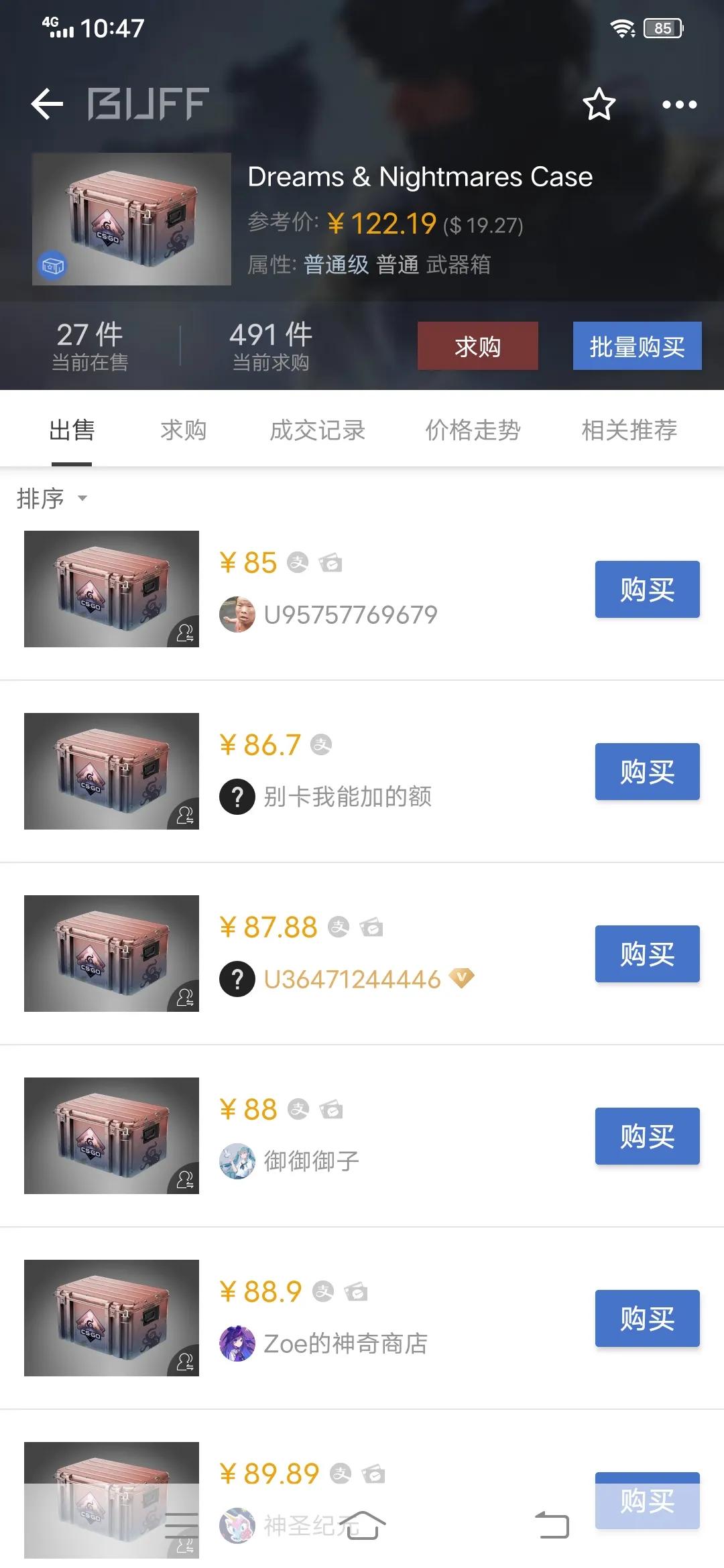 今天逛市场突然发现市场出现了新的箱子,点开一看里面有些内容没有刷新出来,只看到隐秘级武器为冲锋枪,有点稍稍的失落,但是作为一个开箱爱好者,出新箱子和大行动到来是一样的开心,开心就开心在自己又有新的素材了,这次的皮肤看起来还可以,有独角兽的元素,绿色巨龙的AK47,形象可爱的冲锋枪,让人爱不释手,不知道市场稳定后的价格能否让学生党入手一套,话不多说带大家看看新箱子的价格和皮肤