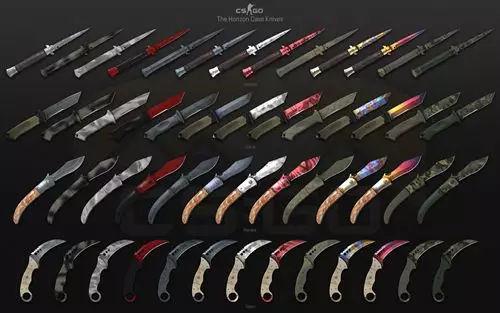 本款武器箱的金色稀有和地平线武器箱一样,都是新出的四把刀:短剑、锯齿爪刀、折刀和熊刀。