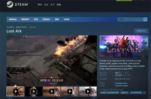 1、在steam上搜索【Lost Ark】,即可免费获取。