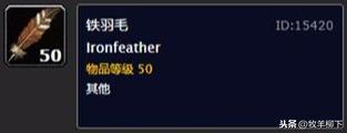 铁羽毛就制皮能用,制皮能做三个蓝色品质的装备,一件57级的锁甲迅行护腕和两件皮甲53级的铁羽胸甲和49级的铁羽肩甲,迅行护腕的属性还是不错的,加7耐力加41远程攻击强度,但是做这个护腕除去60根铁羽毛外,还需要8瓶幼虫酸液,所以极少有人去做这个护腕。