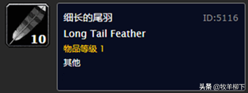 这个羽毛的爆率还是很高的,大多数30级以下的鸟类和鹰身人都有掉落。需求量还是非常大的,因为法师和牧师这2个职业的玩家非常多,轻羽毛是法师的缓落术和牧师的漂浮术的施法材料。